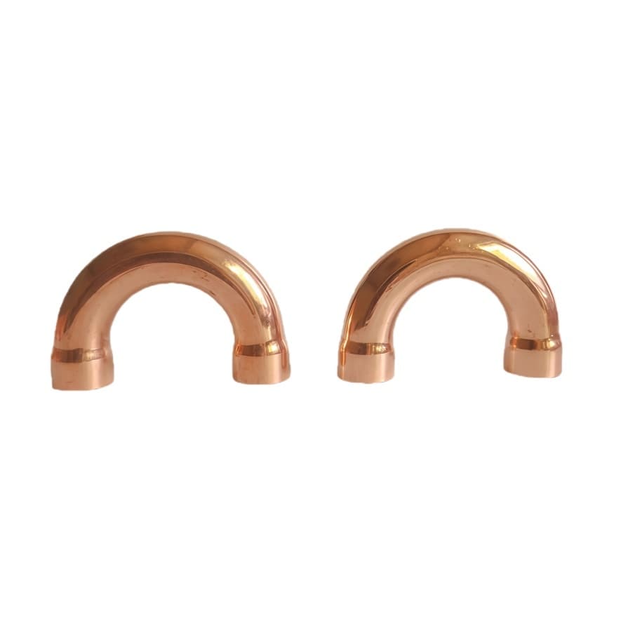 The 180° socket copper U-bend fitting is made of T2 high-purity copper through precision bending forming, and is the core accessory for pipeline steering in air conditioning and cold storage refrigeration systems. Its 180° oil return bend design complies with refrigeration pipeline oil return specifications, which can effectively collect lubricating oil in the system and avoid compressor damage due to oil shortage. The socket end adopts flaring process, with inner diameter tolerance controlled within ±0.05mm, adapting to plug-in welding of copper pipes, with full solder filling and excellent sealing performance. The fitting bending radius is standardized, with the minimum bending radius ≥2.5 times the pipe diameter, ensuring smooth refrigerant flow and pressure loss ≤0.02MPa. The surface undergoes anti-oxidation treatment, resistant to humid corrosion, and has stable performance in the temperature range of -40℃ to 150℃. Applicable to pipelines of refrigeration equipment such as air c…