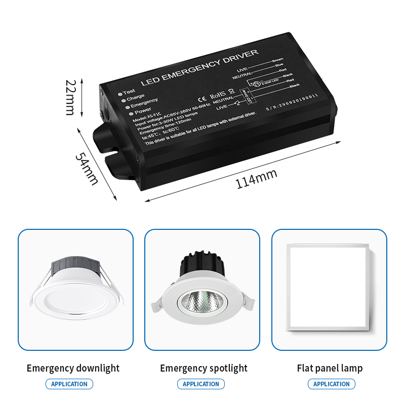 Devices like the 20W Emergency Battery Backup and 40W LED Emergency Power Supply operate across AC 85V–265V and DC 20V–160V, ensuring compatibility with global power grids.