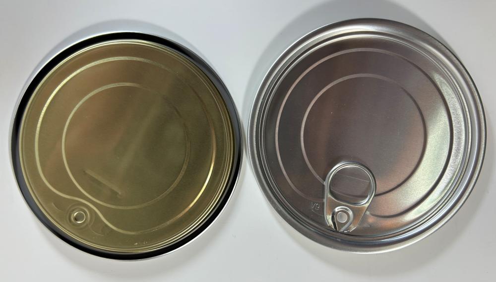 and series of tin can lids, covering regular bottom ends, EOE, Peel Off ends,