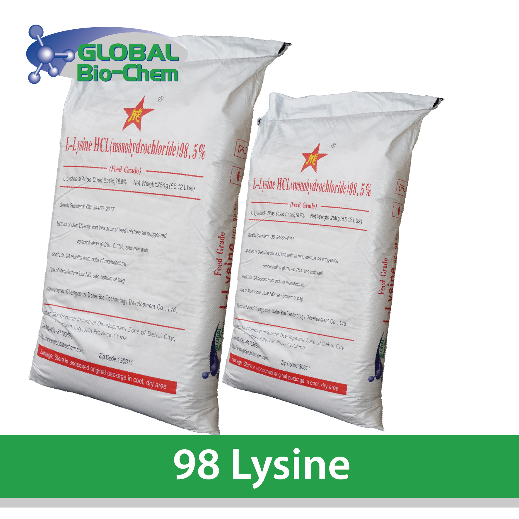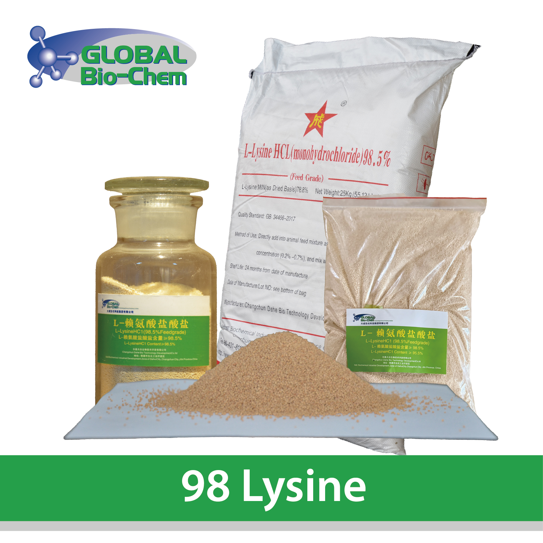 L-lysine is one of the essential amino acids for humans and animals,and it is the most used amino acid in animal feed for the corn and soybean based feed,lysine is the first restrictive amino acid for swine,the second restrictive amino acid for poultry.The balanced diet with additional lysine and other essential amino acids plays an important role in improving the animal health level and the growth performance,and reducing nitrogen emissions.