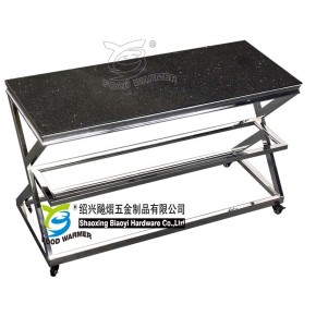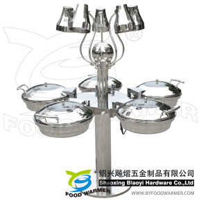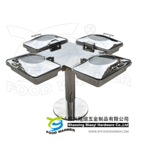 We are Shaoxing Biaoyi Hardware Products Co., Ltd. BY FOOD WARMER, a Chinese Manufacturer of Heat lamp food warmer, Carving station, Chafing dish and Special rotating chafing station and mobile chafing station. We professionally design and produce high end buffet wares. We endeavor designing longer life and user friendly products and customized products/parts to satisfy our clients demand. Combo rotating chafing stations and Mobile chafing stations are the core product collections which make us differ from the other brands and manufacturers. All in 1 and 1 in all functional center with stunning outlook improve the customer experience in the restaurant. The knock down designed chafing dishes differ us from the other chafers. Frame with heating plate help to free the water pan for wash without cord and screw welding mark. Take-out lid make the clean work more easily and completely. Mechanic hinge on the lid assure the OPEN-CLOSE life much longer than hydraulic chafing dishes. On the ot…