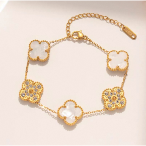 clover titanium steel interlaced imitation diamond bracelet