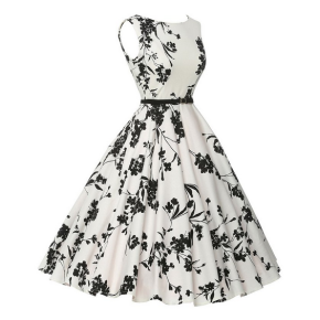 Womens flower printed lady vintage 50s sleeveless dress