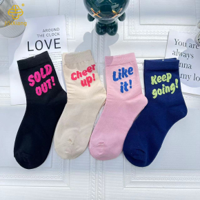 Korean version colored letter tube socks with smiling face and sporty style