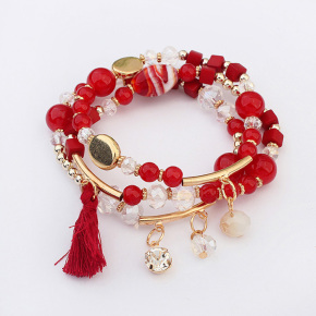 Crystal Beaded Bracelet Rhinestone Pendant Tassel Bracelet