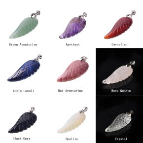 Angel Wing Crystal Pendant Necklaces Adjustable Rope Reiki Healing Stone Natural Gemstone Necklace for Women Men