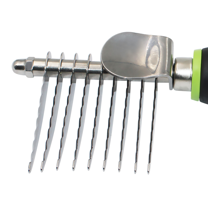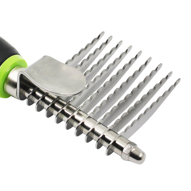 Its unique design structure makes the grooming process smooth and unobstructed, which can not only effectively reduce hair tangles, but also promote blood circulation and improve the skin health of your pet. Dematting Brushes For Dogs are suitable for all hair types, whether it is long-haired, short-haired or rough dog breeds, this Dematting Comb tool can perform excellent results. Choose our Pet Detangling Rake Comb Tool to provide your customers with an efficient and practical grooming tool, making every grooming a wonderful time for pets and owners to i…