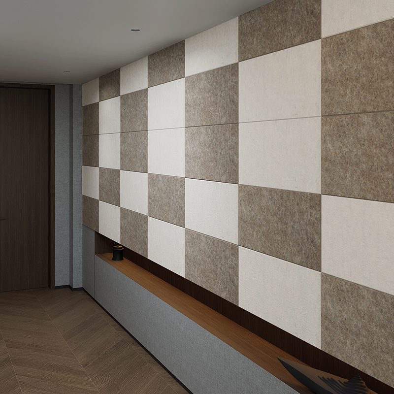 Reception Room PET Sound Absorbing Decorative Wall Panels are designed to enhance acoustic comfort while elevating interior style. Made from eco-friendly PET felt, these acoustic polyester panels effectively reduce echo, dampen unwanted noise, and create a calm, welcoming atmosphere—ideal for reception areas, lounges, offices, and hospitality spaces. Their lightweight yet durable structure ensures easy installation on any flat surface, offering designers the flexibility to create unique visual patterns and layered wall effects.Available in a wide range of colors, shapes, and thicknesses, the polyester fiber acoustic board blend seamlessly with modern décor while delivering reliable sound-absorption performance. Their soft texture adds warmth to a room, and their excellent fire resistance, moisture resistance, and long-lasting stability make them suitable for high-traffic public environments. Whether used as a full wall treatment or as decorative acoustic accents, polyester acoustic pan…