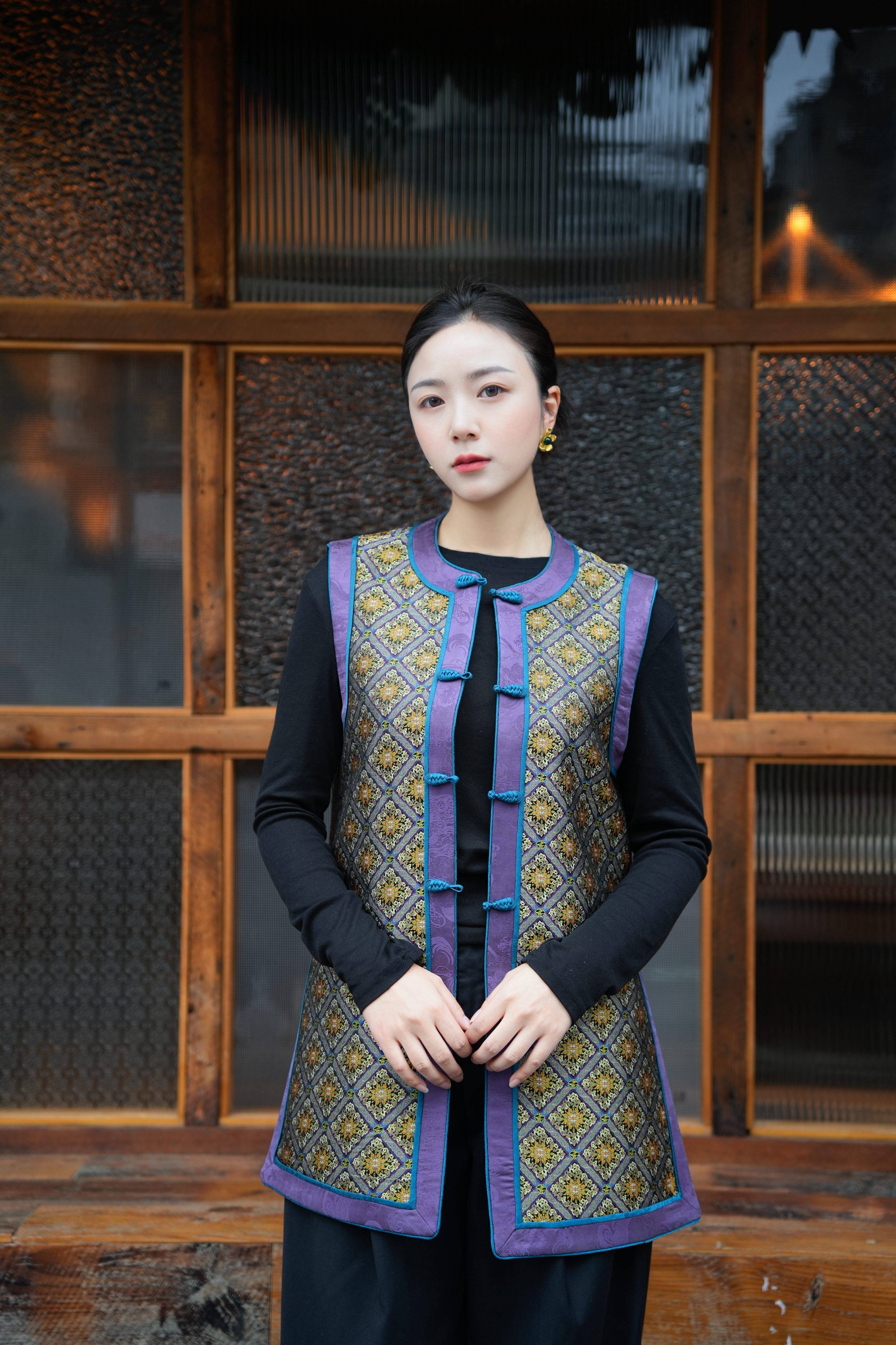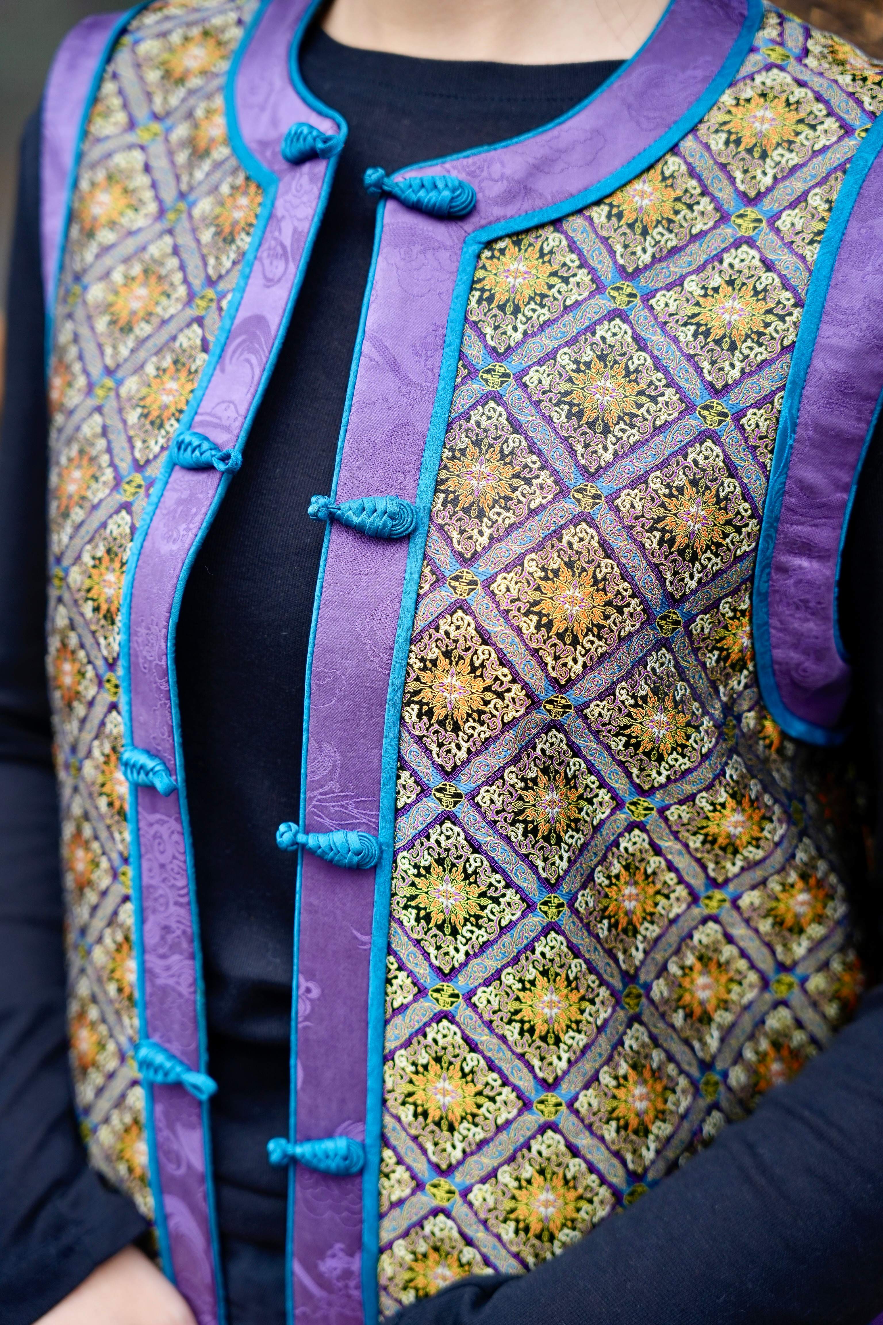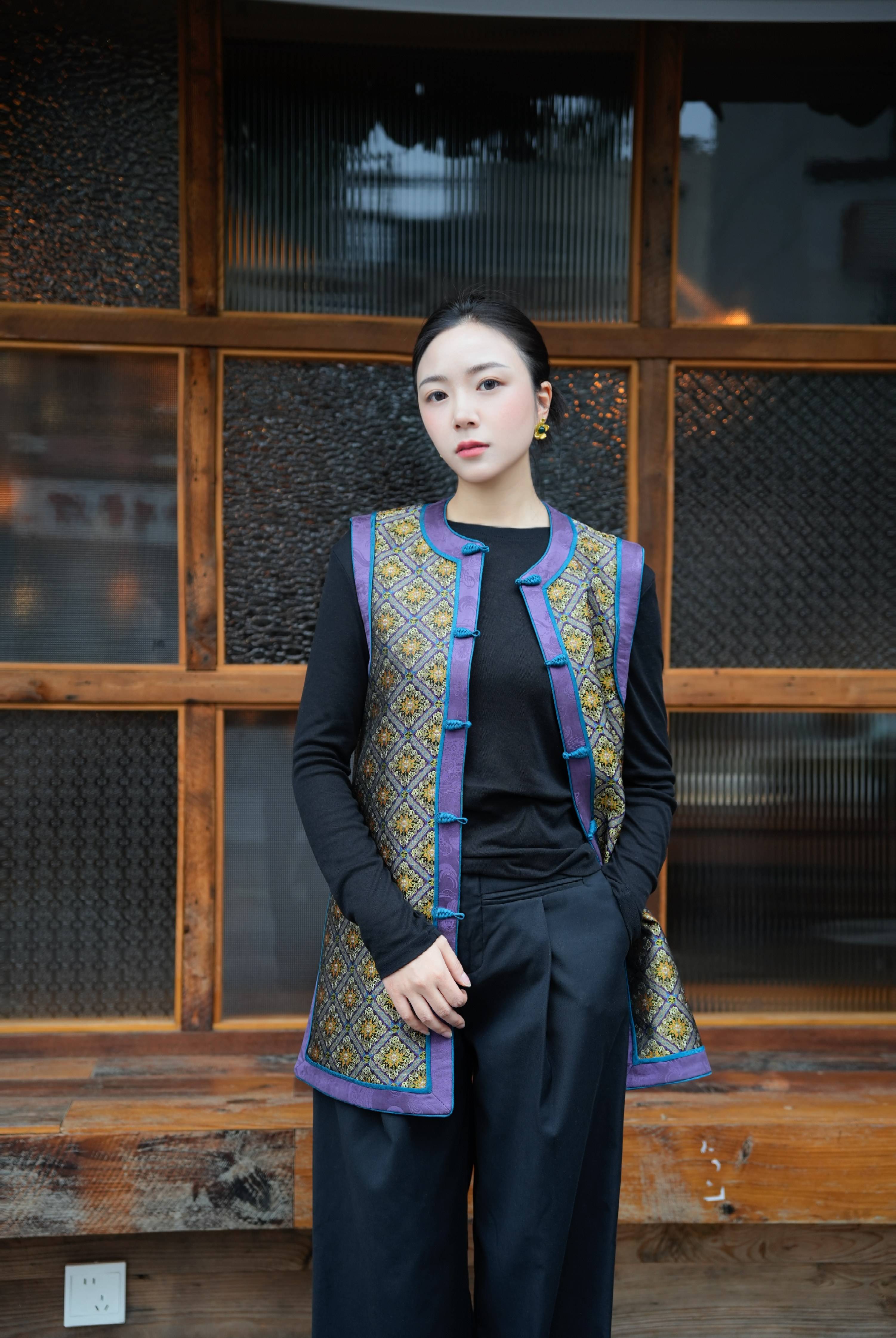 Shisanchai Grassland Post Road Shu Brocade Hand-Knotted Button Vest