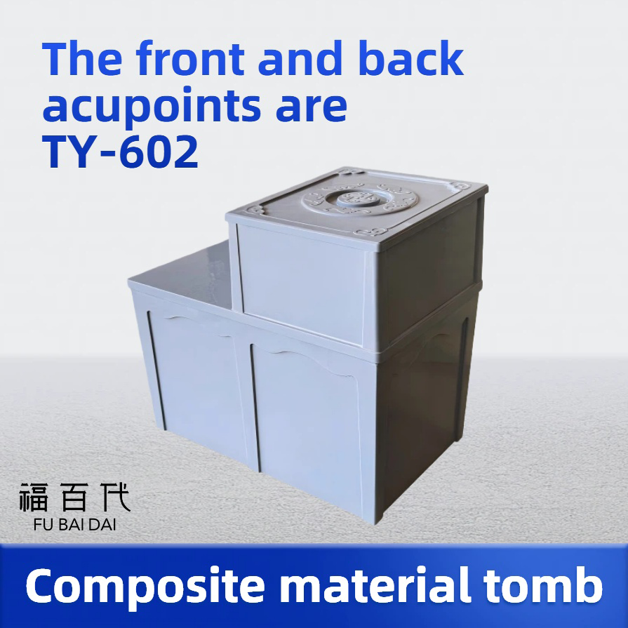 The TY-602 front and rear double-chamber tomb box is crafted with a composite material molding process, featuring an integrated molding without any seams and a sturdy structure that can withstand high pressure. With an outer diameter of 400×620×600mm, the direct burial installation method eliminates complex procedures and is suitable for various cemetery sites. The ingenious design lies in the "rear cavity carrying the tombstone", integrating the functions of burial and commemoration without occupying additional land resources, which conforms to the environmental protection trend of modern funeral services.