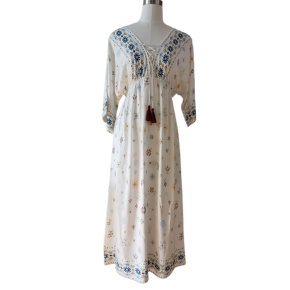Tassel Tied Collar Embroidered Pattern Chiffon Dress