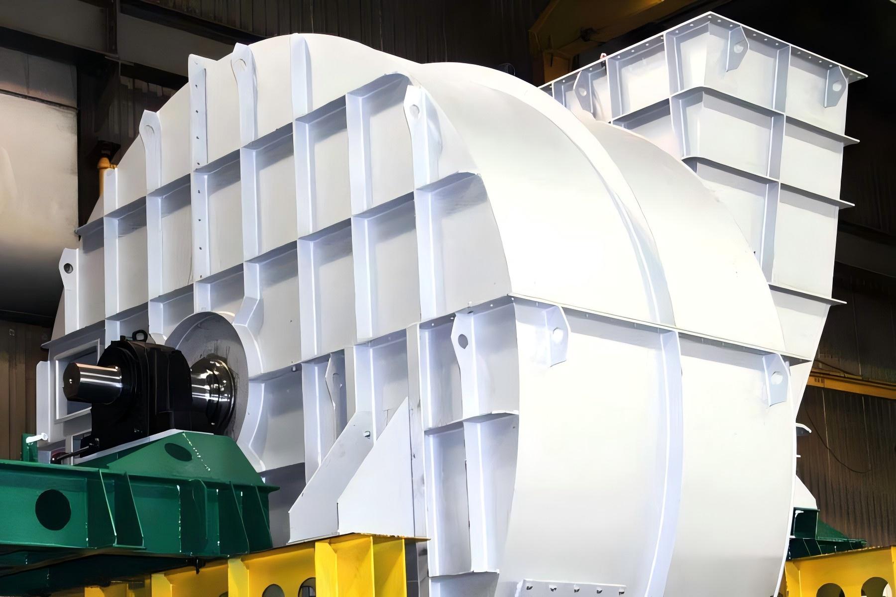 Large centrifugal fans: According to the characteristics of the conveyed medium (such as high temperature, corrosion, and dust), special materials such as high-temperature resistant alloys, corrosion-resistant stainless steel (316L, Hastelloy), and wear-resistant liners are selected. For dusty gas, the impeller is treated with wear-resistant surfacing welding or spraying, and a wear-resistant lining is added to the inner wall of the casing to reduce wear. Cooling system for high-temperature working condition units, with a temperature resistance range of -40 ℃ to 800℃ (higher for customized types). Application environment: Air supply and exhaust for thermal power plant boilers, ventilation and cooling for nuclear power plants, blast furnace blower for steel mills, flue gas exhaust for converters, ventilation for sintering machines, air supply for non-ferrous metal smelting furnaces, process gas transportation for large-scale chemical plants, ventilation for ammonia synthesis plants, wa…