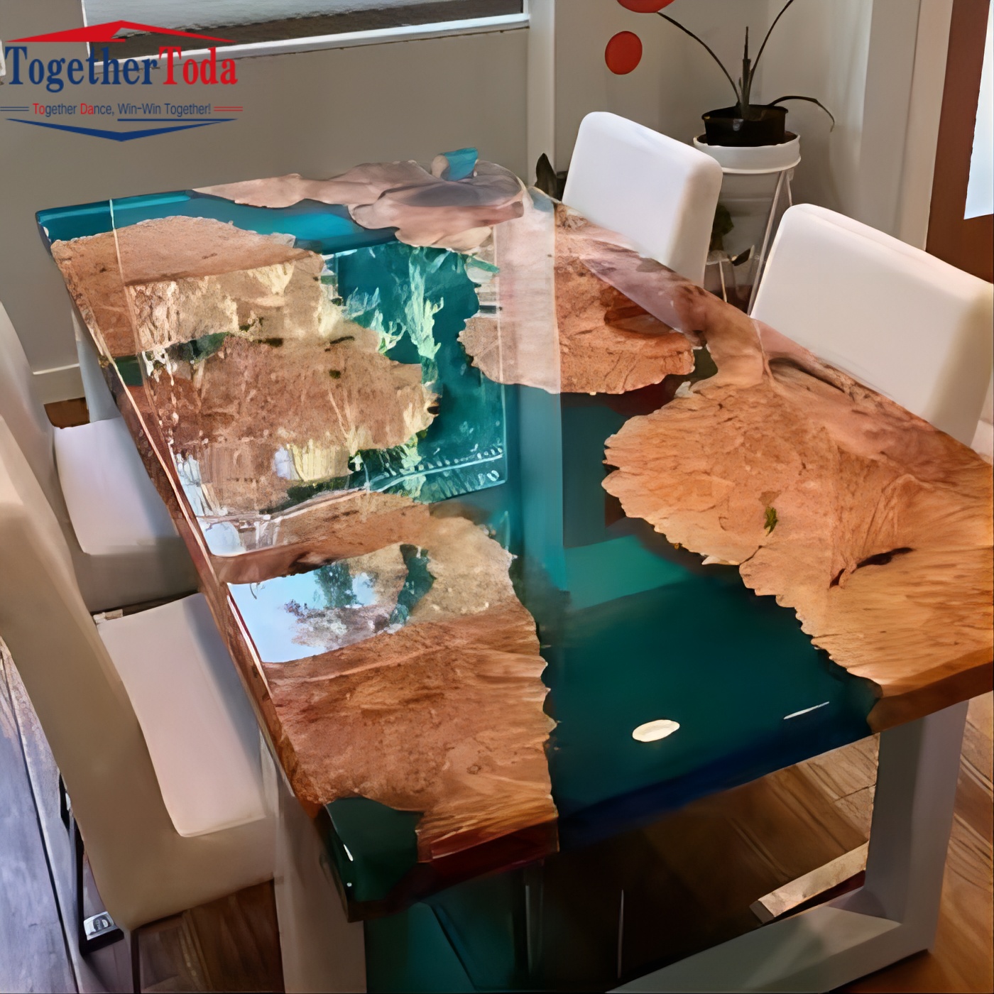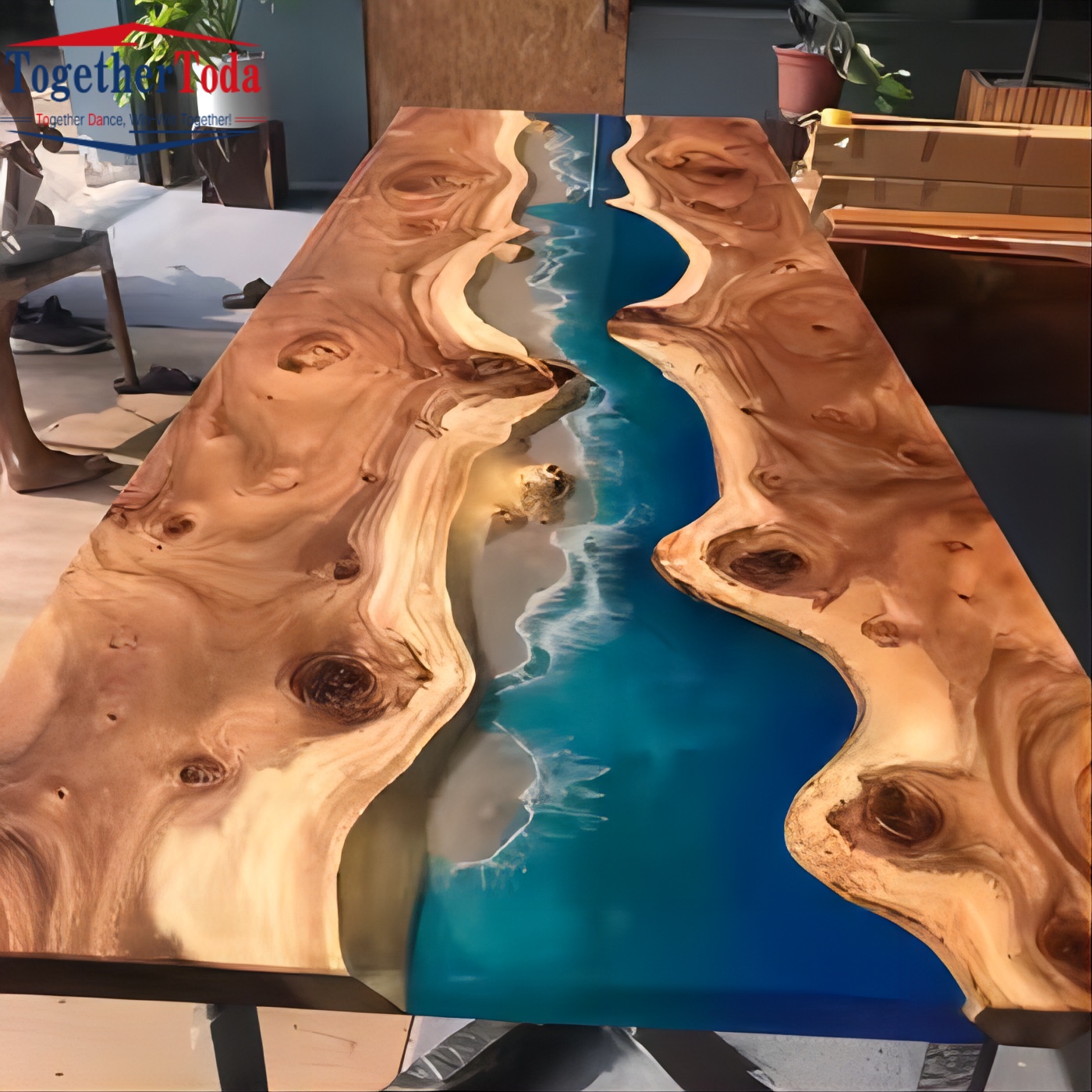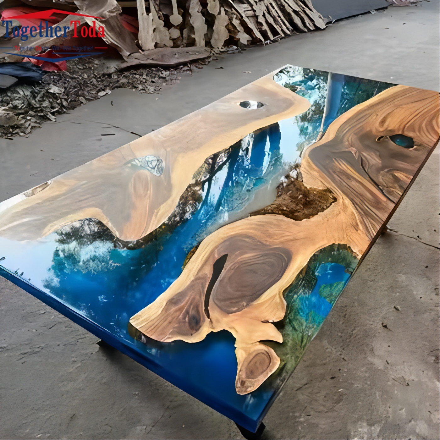Wooden Epoxy Resin Dining Wooden Top Coffee Table